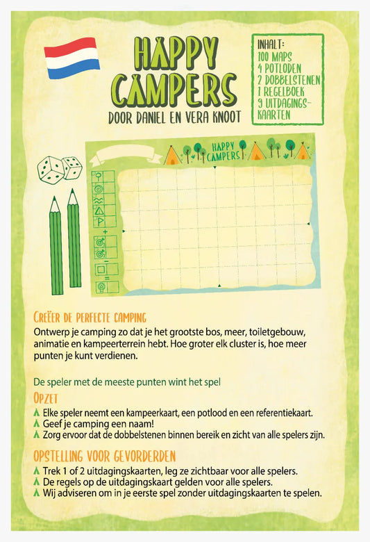 Ontdek Nederlandse versies van klassiekers zoals Yahtzee, Regenwormen en Qwixx, maar ook verrassende Nederlandse dobbelspellen zoals Happy Campers en en Honey Bees, die je geluk op de proef stellen. Kleine spelletjes met dobbelstenen en vaak een stapeltje vellen papier zijn ideaal voor onderweg, op vakantie of gewoon aan de keukentafel.